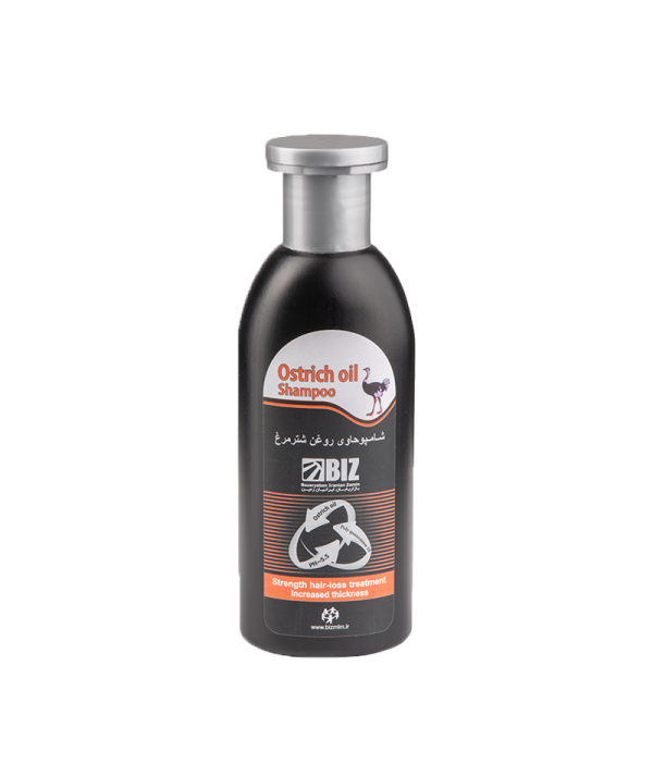 شامپو حاوی روغن شترمرغ بیز با بهره گیری از ترکیبات طبیعی به موها استحکام می بخشد، موی سر را از ریشه تا انتها قوی کرده، پوست سر را مرطوب نگه داشته و از پوسته شدن آن جلوگیری می نماید. این شامپو همچنین به افزایش سرعت رشد مو کمک بسیاری می کند. روغن شترمرغ موجود در این محصول بافت های سست شده مو را ترمیم کرده و موجب تحریک و رشد مو در همه ناحیه های سر می شود.