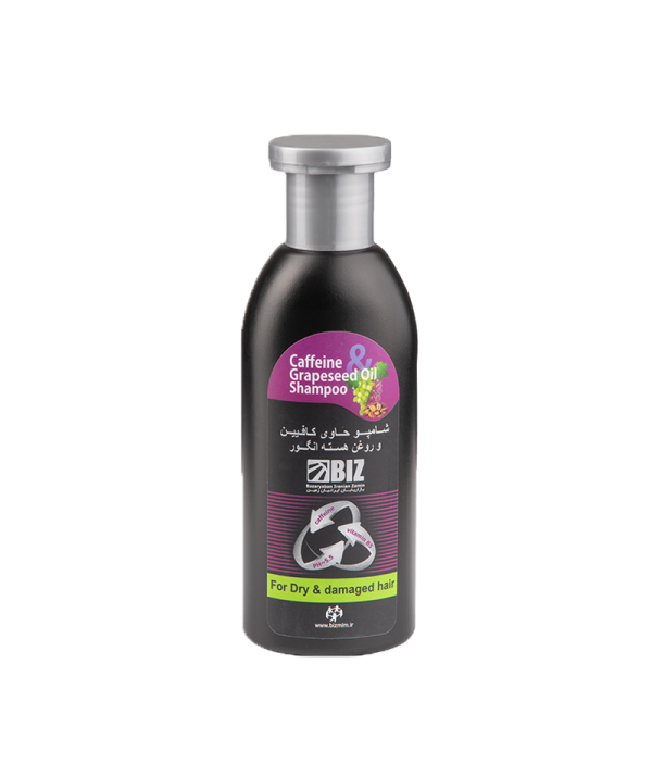 شامپو حاوی کافئین و روغن هسته انگور بیز به دلیل داشتن کافئین موجود در شامپو باعث افزایش گردش خون شده و در نتیجه از ریزش مو جلوگیری می کند.